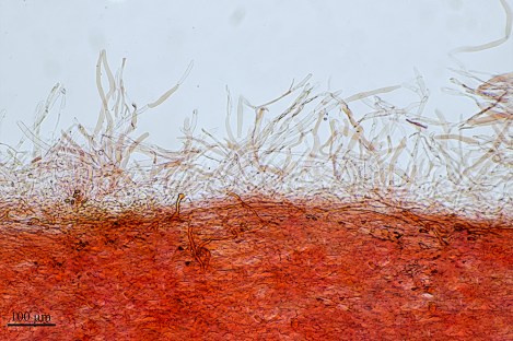 Le stipitipellis est en cutis. Le contexte du pied est formé de cellules cylindriques, bouclées, parallèles à la direction de croissance du stipe.